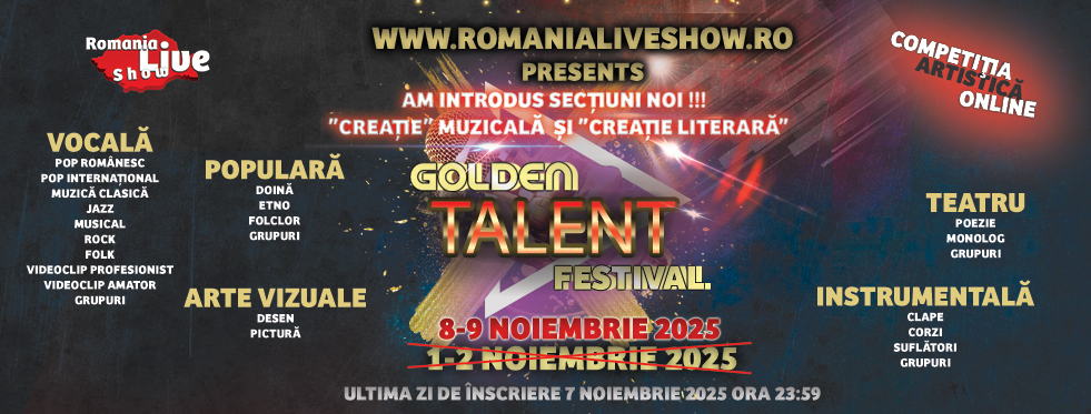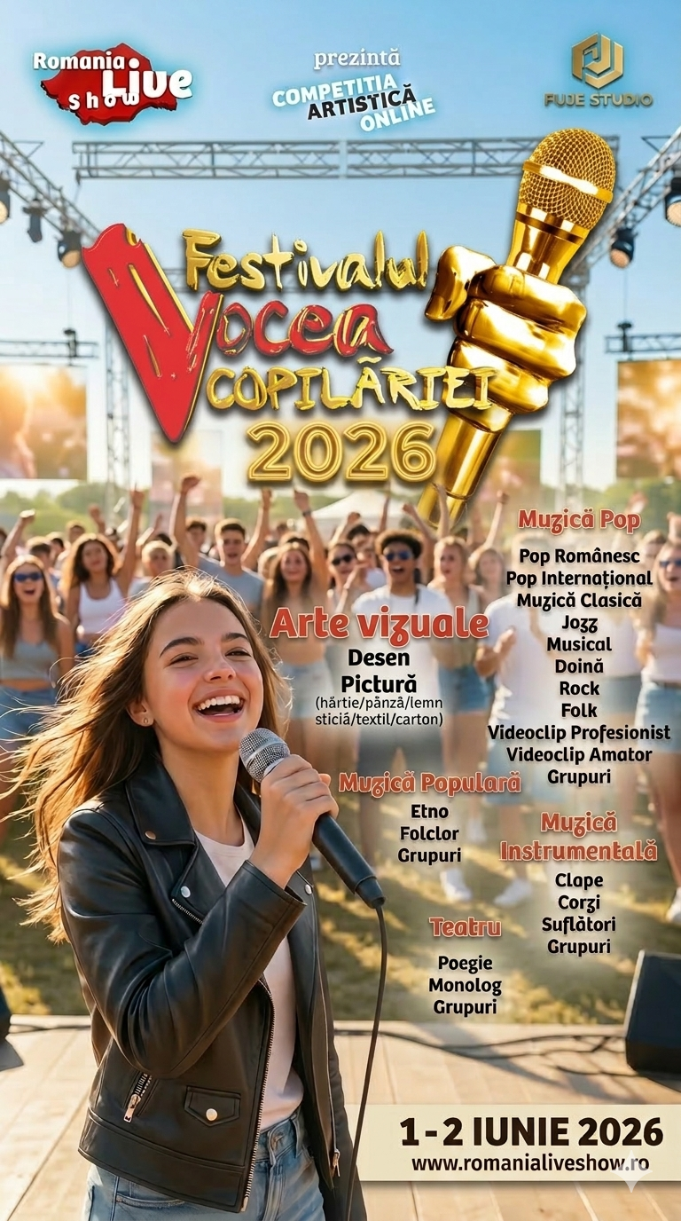 Romania Live Show organizează competiții, concursuri de interpretare și de creație, internaționale, ce se desfășoară ONLINE pentru a pune în evidență munca și talentul copiilor și a adolescenților.